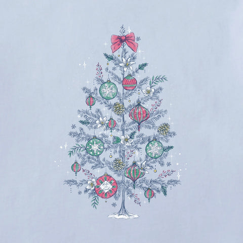 Women's Dreamy Christmas Tree Long Sleeve Crusher Tee in Glacier Blue