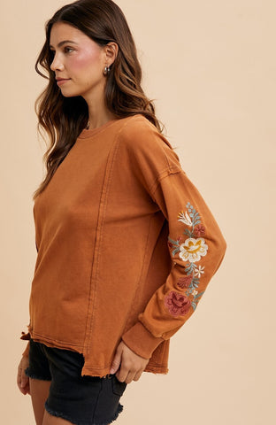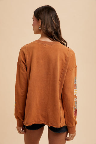 Chunky Loose Knit Sweater in Camel/Blue Sky