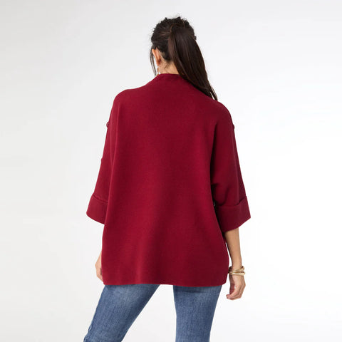 Mock Neck Sweater with Pearl Button Cuff in Black