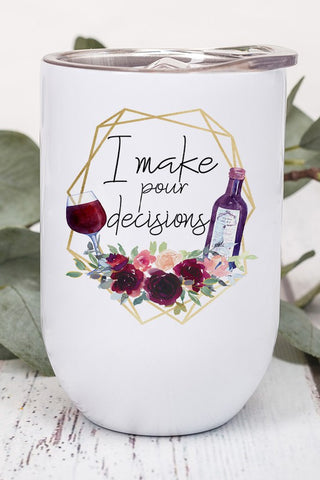 12 oz Stainless Steel Wine Tumbler. Image printed on both sides. Includes lid and plastic straw. Double wall vacuum insulation.