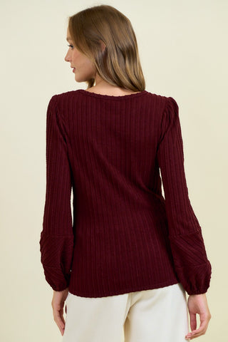Round Neck Bubble Long Sleeve Textured Knit Top